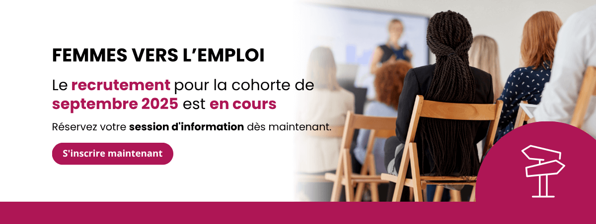 O programa Femmes vers l’emploi aposta no desenvolvimento pessoal, social e profissional para ajudá-la a reconquistar a confiança no futuro, conseguir um emprego que combine com você e conquistar a autonomia financeira.